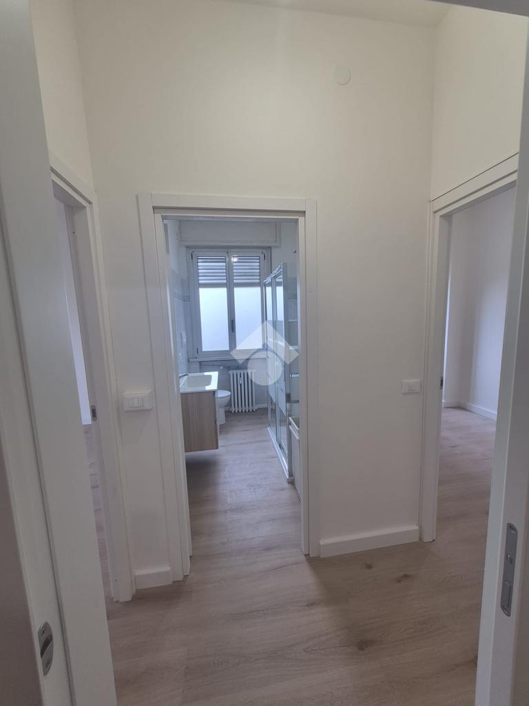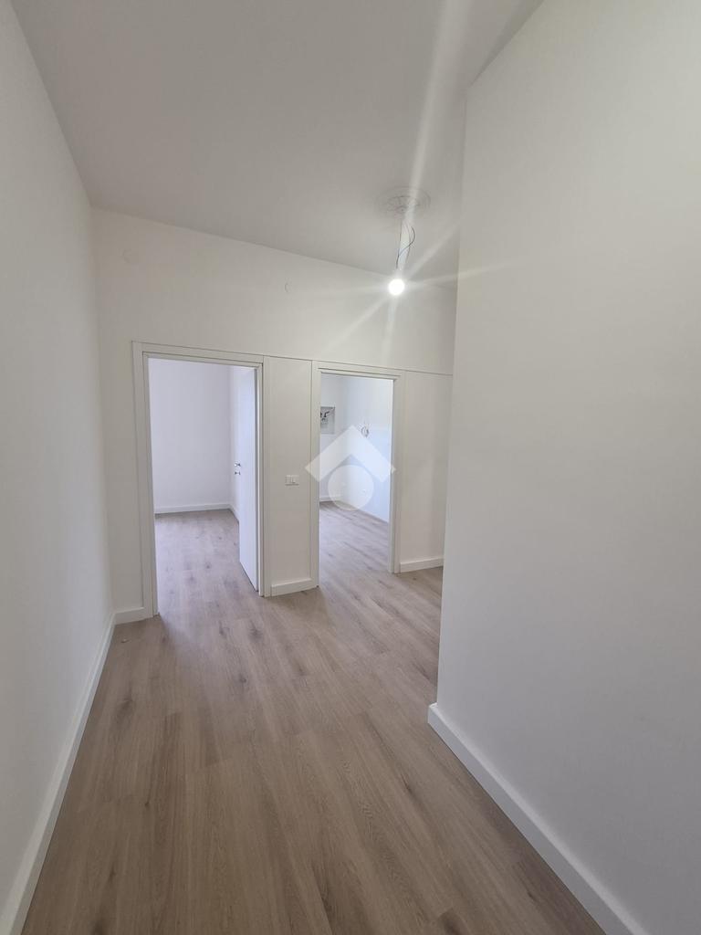L’appartamento accoglie con un ingresso su disimpegno che distribuisce in modo funzionale gli ambienti. La cucina è separata dal soggiorno, offrendo così spazi ben distinti e facilmente organizzabili; il soggiorno, grazie alla sua metratura, può eventualmente essere adibito a camera matrimoniale, a seconda delle esigenze abitative. La zona notte comprende una camera matrimoniale, una cameretta singola ideale anche come studio, e un bagno.