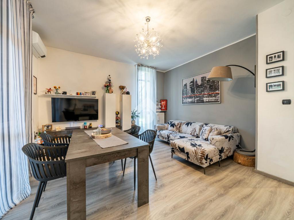Sì, perché qui è già stato fatto tutto. Il bagno, i pavimenti e gli impianti (elettrico e idrico) sono stati rifatti nel 2010, mentre la caldaia è stata sostituita nel 2024. Gli infissi sono in PVC con doppi vetri e apertura vasistas, c’è la porta blindata, l’aria condizionata caldo/freddo e persino una comoda cabina armadio. Tradotto: niente sorprese, niente lavori, niente stress.L’appartamento è un trilocale super luminoso — e non è un modo di dire — grazie alla tripla esposizione est, ovest e sud. La luce qui non manca mai, nemmeno nelle giornate più grigie. La zona giorno è ampia e accogliente, con cucina a vista: lo spazio ideale per vivere la casa tutti i giorni o per invitare amici (senza doverli mettere a sedere in cucina “alla buona”). Dal soggiorno si accede anche al balcone, perfetto per un caffè al sole o un momento di relax. Un disimpegno conduce alla zona notte, dove troviamo una camera matrimoniale, una camera singola e il bagno, il tutto ben distribuito e funzionale.Inclusa nel prezzo c’è anche una cantina, sempre utile per tutto ciò che “non si sa mai dove mettere”. La classe energetica è in fase di aggiornamento!