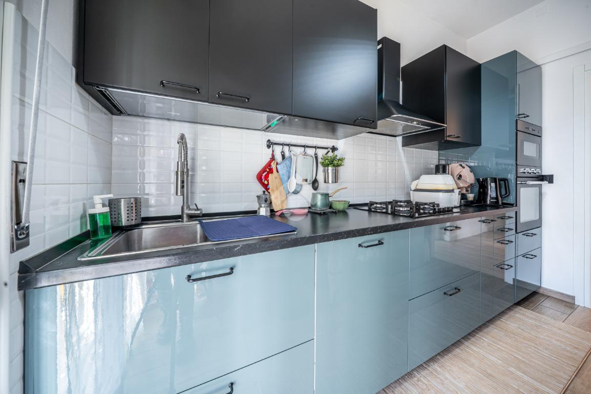 L’appartamento colpisce fin da subito per gli spazi generosi e la splendida luminosità, garantita dall’esposizione su tre lati (est, sud e ovest), che permette alla luce naturale di accompagnare ogni ambiente durante tutta la giornata.