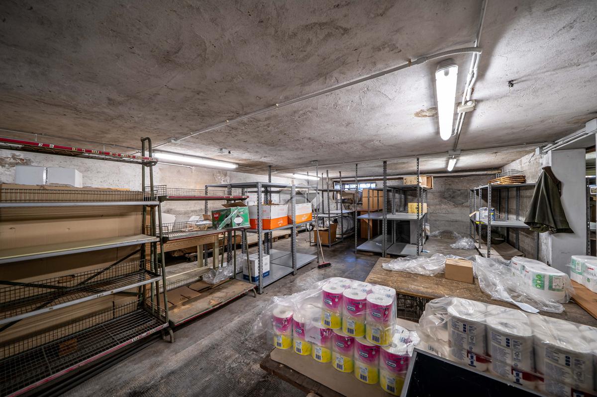 Scendendo al piano seminterrato, sono presenti i magazzini di 130 mq, ideali per lo stoccaggio o come supporto logistico all’attività commerciale.